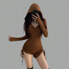 Style Casual Hooded Jumpsuit Women's Slimming Fitness Clothes Tight High Waist Long Sleeve Yoga One-Piece Suit